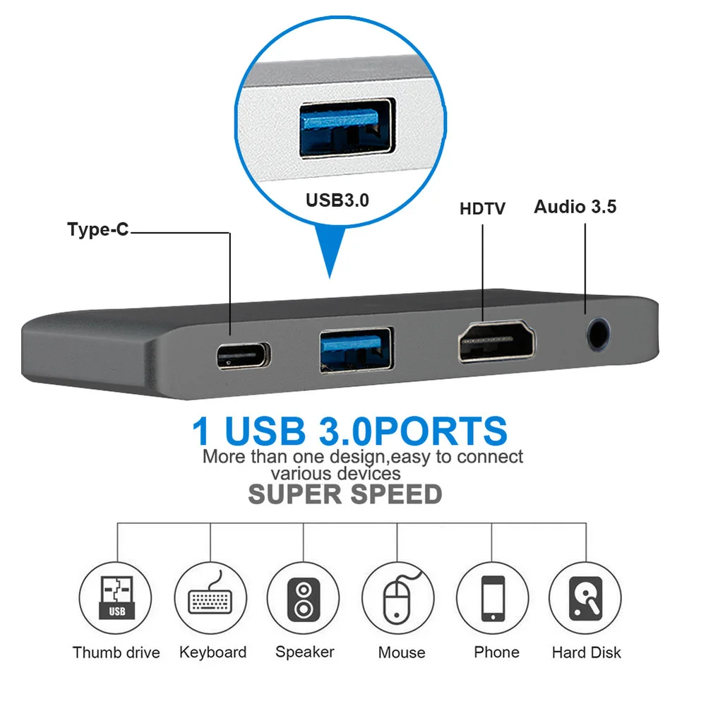 | USB C Hub HDMI Adapter with USB 3.0 3.5mm Jack Port USB Type C Dock for iPad Pro 2018 Macbook ProAir |