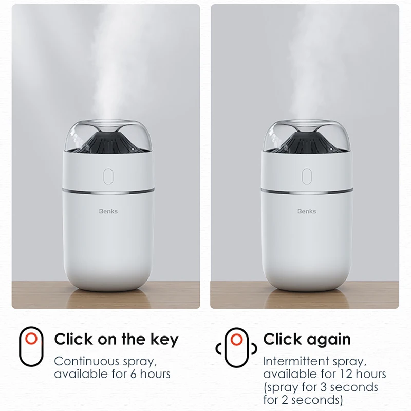 Benks 320ml USB Humidifier Mini Portable Small Volcano Aroma Aromatherapy Air Purifier Car Creative Night Light for Office Home
