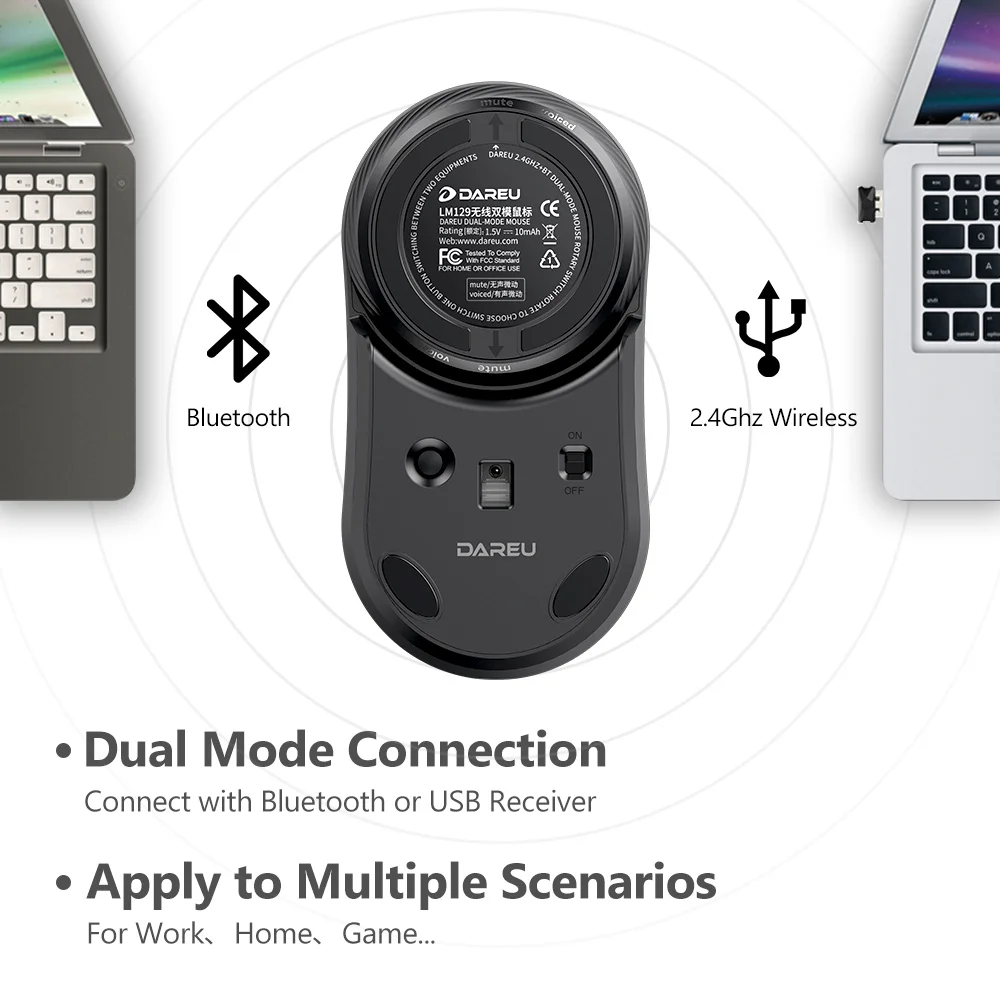 | DAREU UFO Wireless Mute Mouse Bluetooth + 2.4Ghz Dual mode Optical Mice with Mute or Click switch botton For right and left hand |