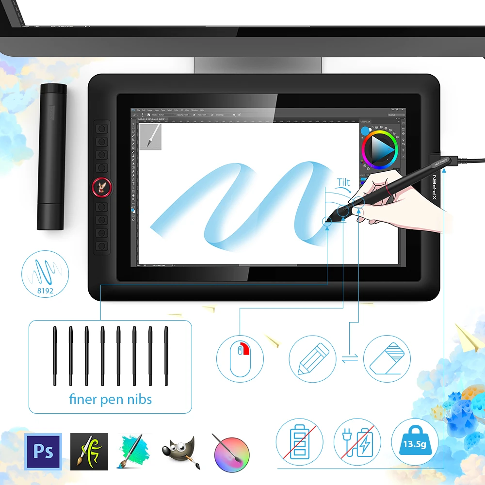 Best Price Comparison With XP-Pen Artist 15.6Pro Drawing Tablet Monitor Holiday version present 1920 X 1080 Graphics with Shortcut Keys and Rolls