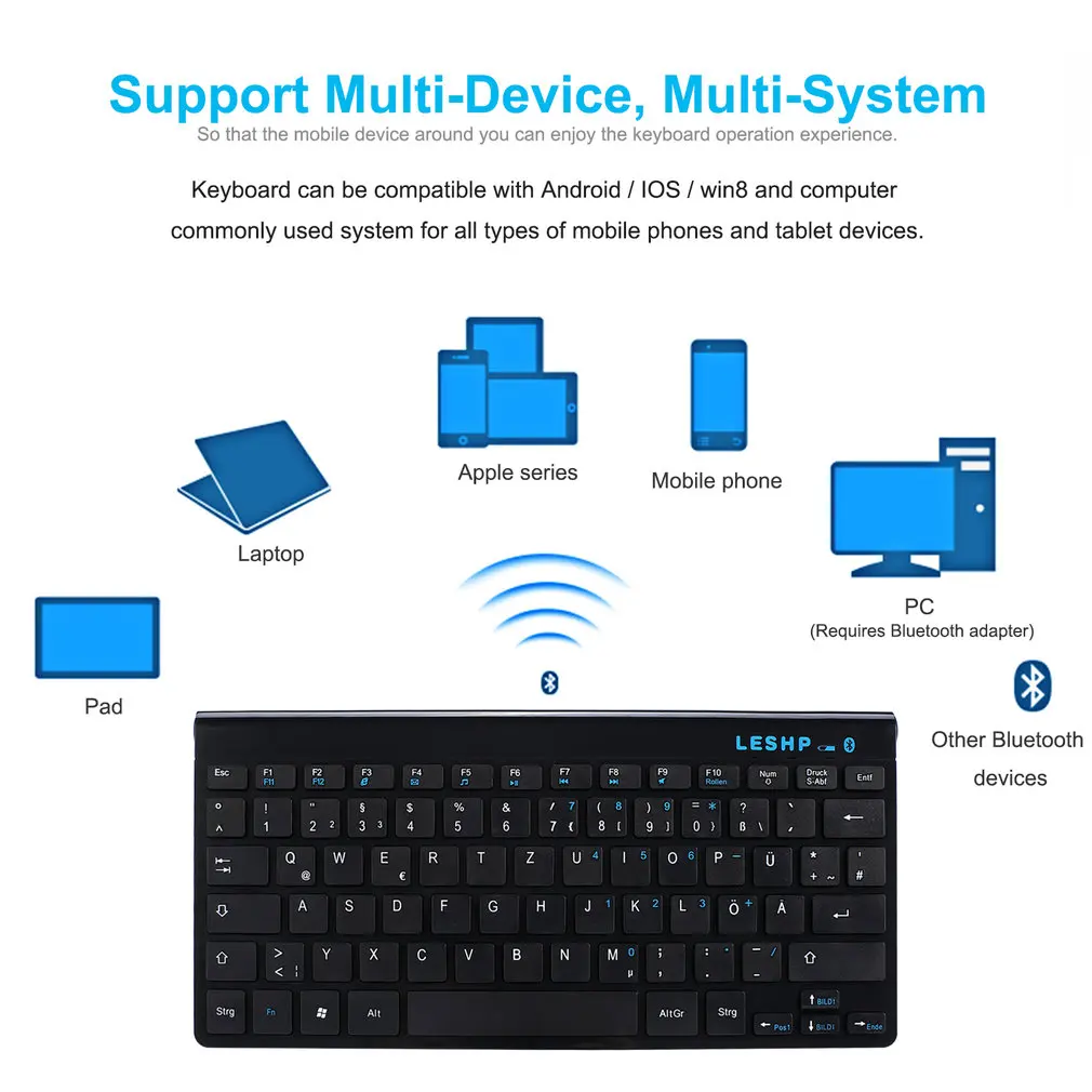 | LESHP Universal Compact Durable Slim Portable Wireless 3.0 Keyboard With Built in Rechargeable Battery |