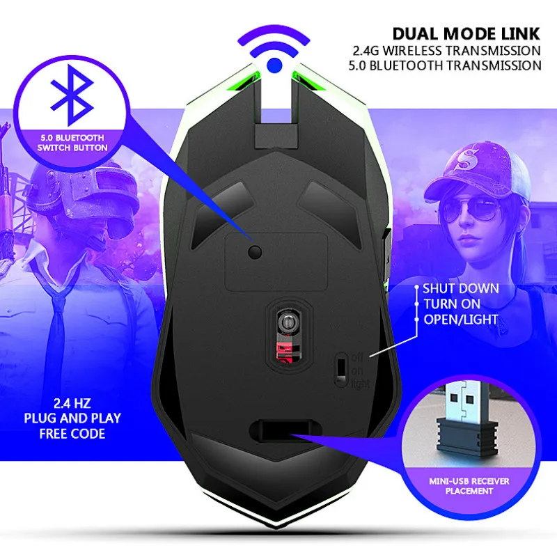 Bluetooth Mouse Gamer Professional 2400DPI 6 Button LED Optical Wirless Gaming Mouse For Macbook Pro PC Laptop Mice Rechargeable