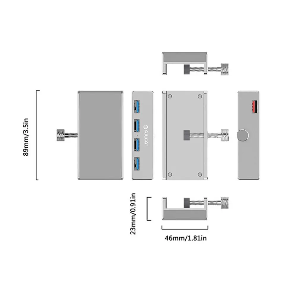 | ORICO MH4PU Aluminum 4 Ports USB 3.0 Clip-type HUB For Desktop Laptop Clip Range 10-32mm Splitter Adapte With 100cm Date Cable |