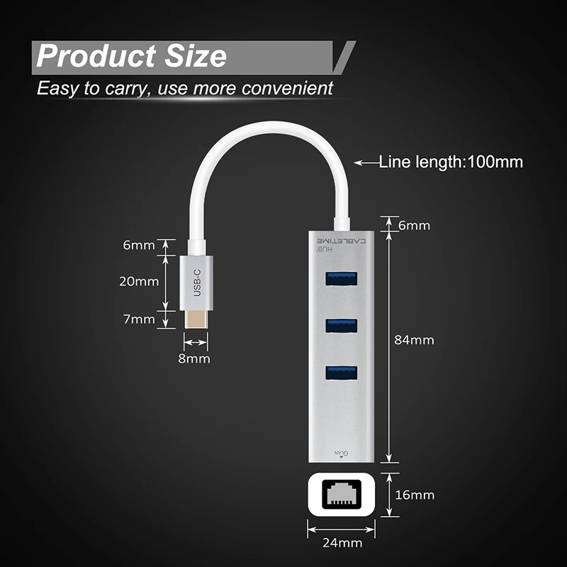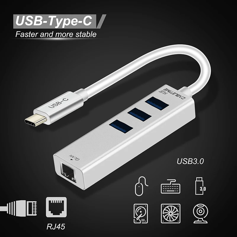 | CABLETIME 2019 USB C Ethernet HUB Type C to USB 3.0 RJ45 Network Card 4 in 1 HUB for Laptop Macbook Matebook 13 X C046 |