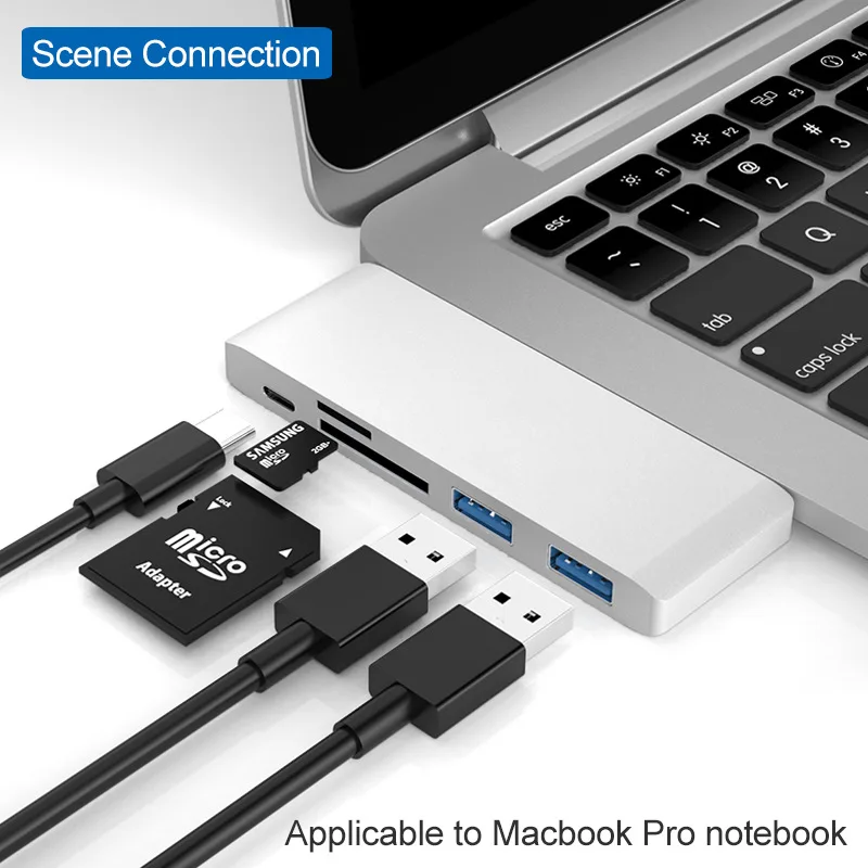 | Type c Hub for MacbookHuaweiHP LaptopSamsung USB Hubs Splitter Type c to TF Card Reader USB 3.0 Computer USB Converter 5 in 1 |