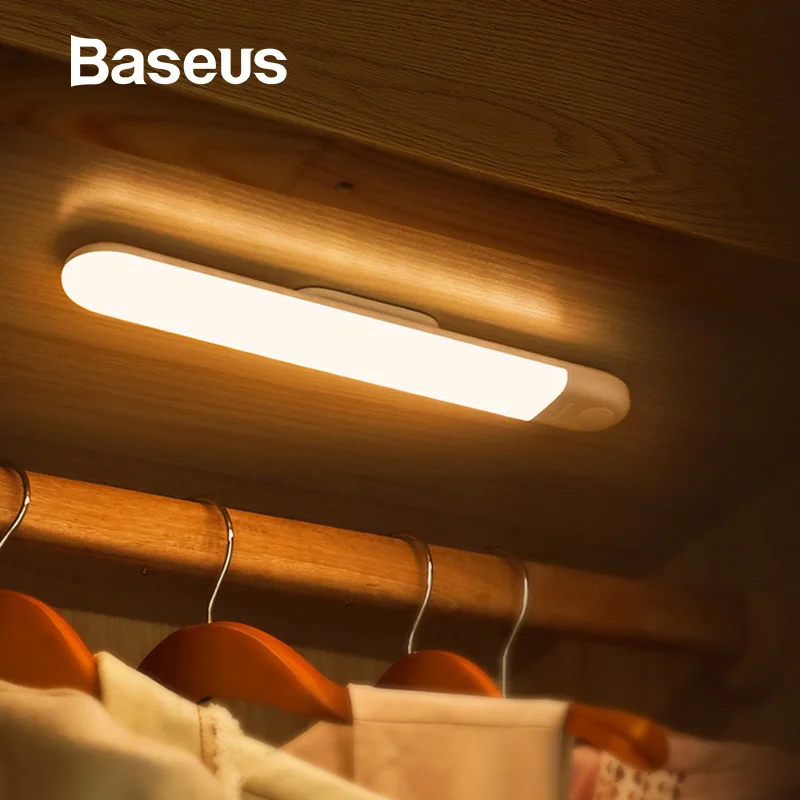 Baseus LED Wardrobe Light PIR Motion Sensor Light USB Rechargeable Night Light LED Night Lamp Magnet Wall Light Warm White LightBuy Now On Aliexpress