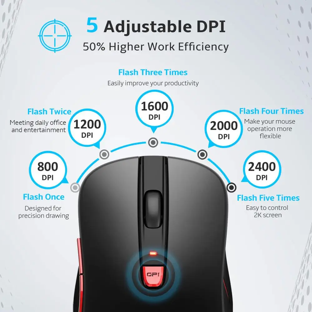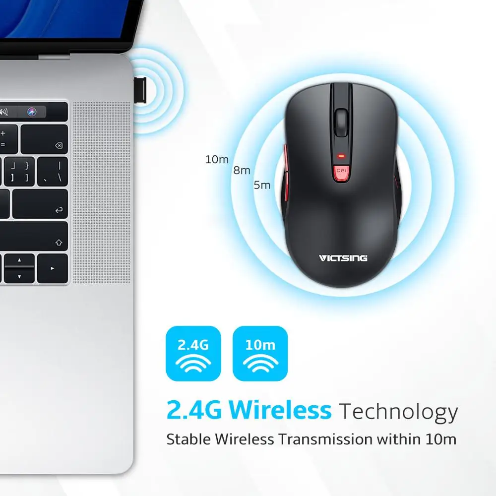 | VicTsing PC106 2.4Ghz Wireless Mouse 5 Adjustable DPI Levels 6 Buttons Ergonomic Computer Mouse With USB Receiver For PC Laptop |
