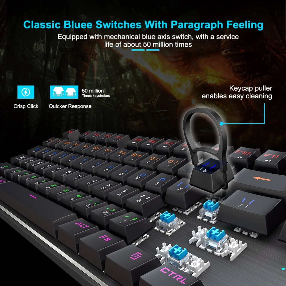 The best product you are looking for is "Mechanical Keyboard RGB Backlit Keyboard Professional Gaming Keyboard 87 Keycaps for Gamer PC Computer Dota Game Blue Switch". This product is available and ready to be purchased. Get attractive discounts every time you shop in our store (aliexpress.com). Aliexpress also provides a coupon of $ 3 for the first buyer to shop there. don't forget to bookmark our store page so you can go shopping again anytime..